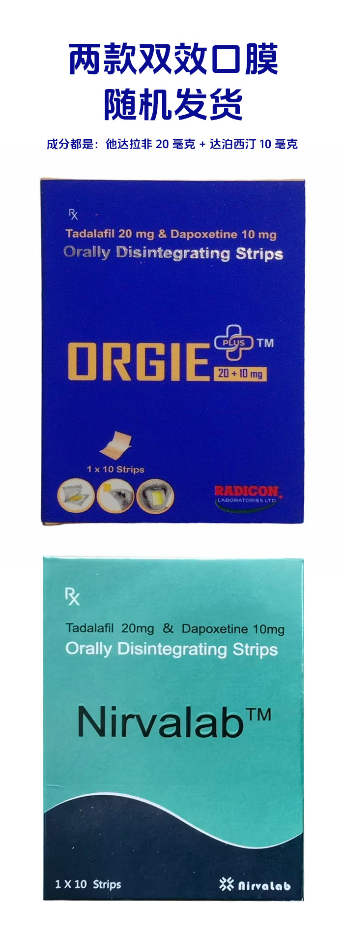 双效口溶膜片 口腔崩解条 Orgie Tadalafil Dapoxetine Tablet 10片/盒